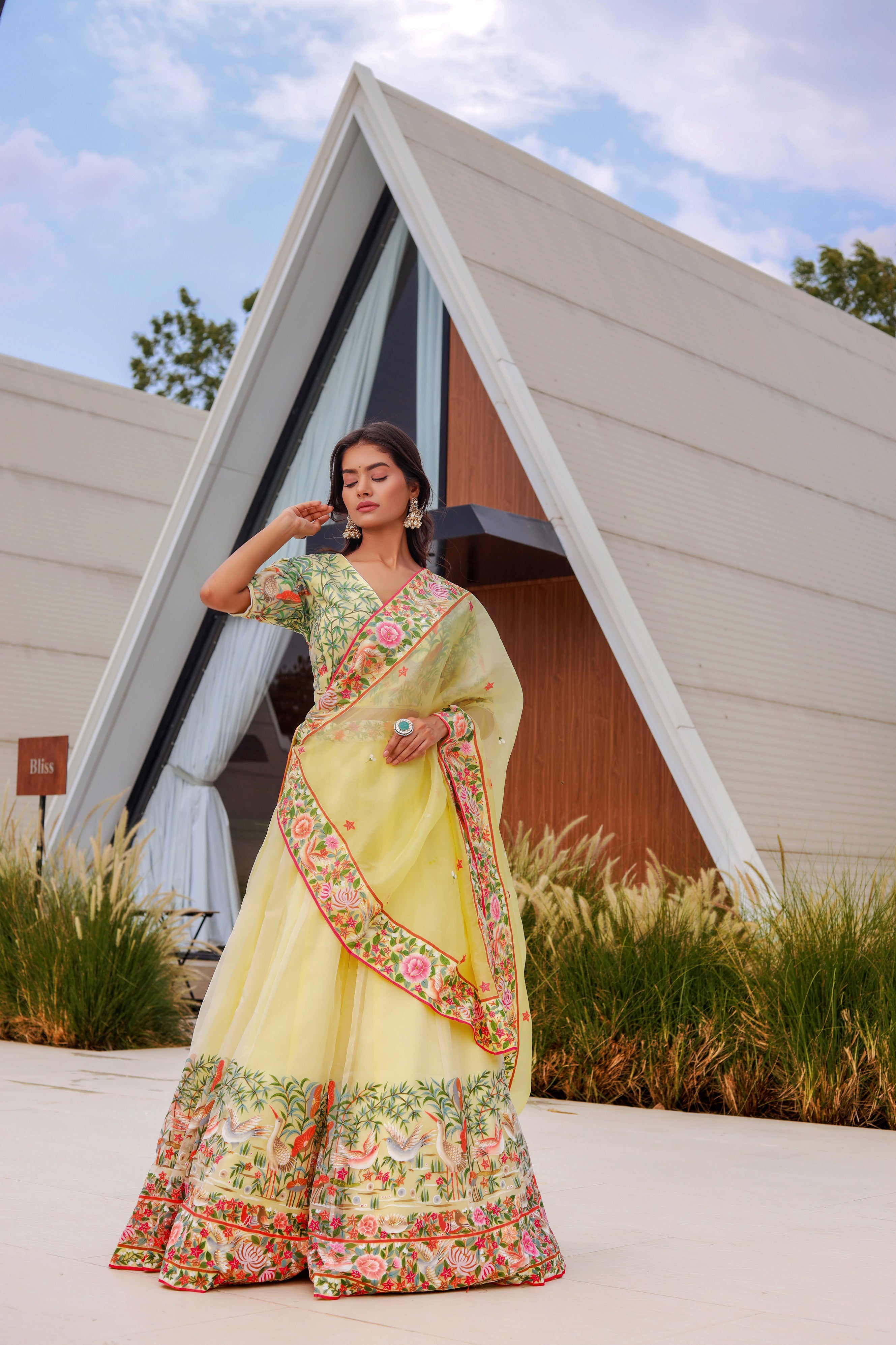 Hand-Painted Silk Organza Lehenga with Embroidered Blouse
