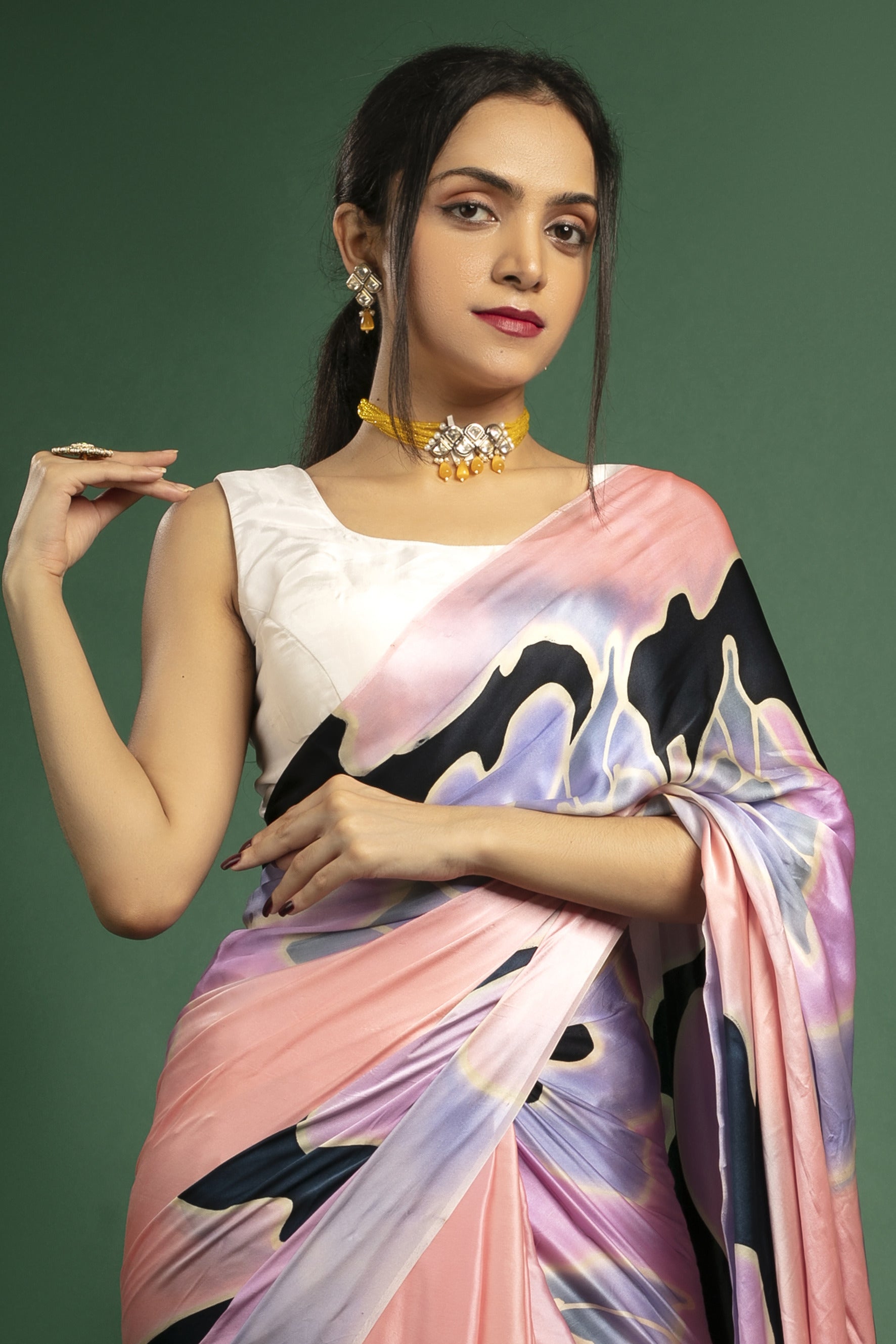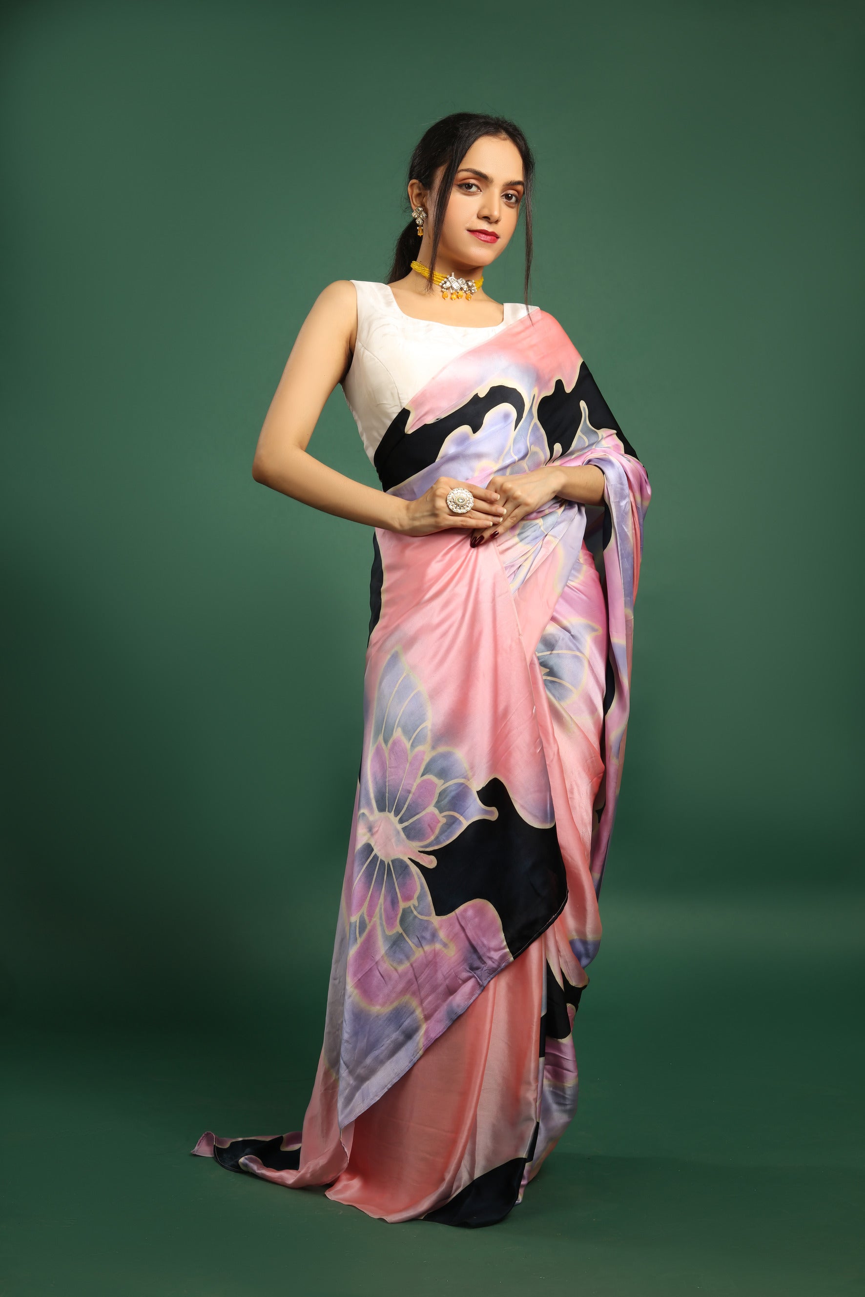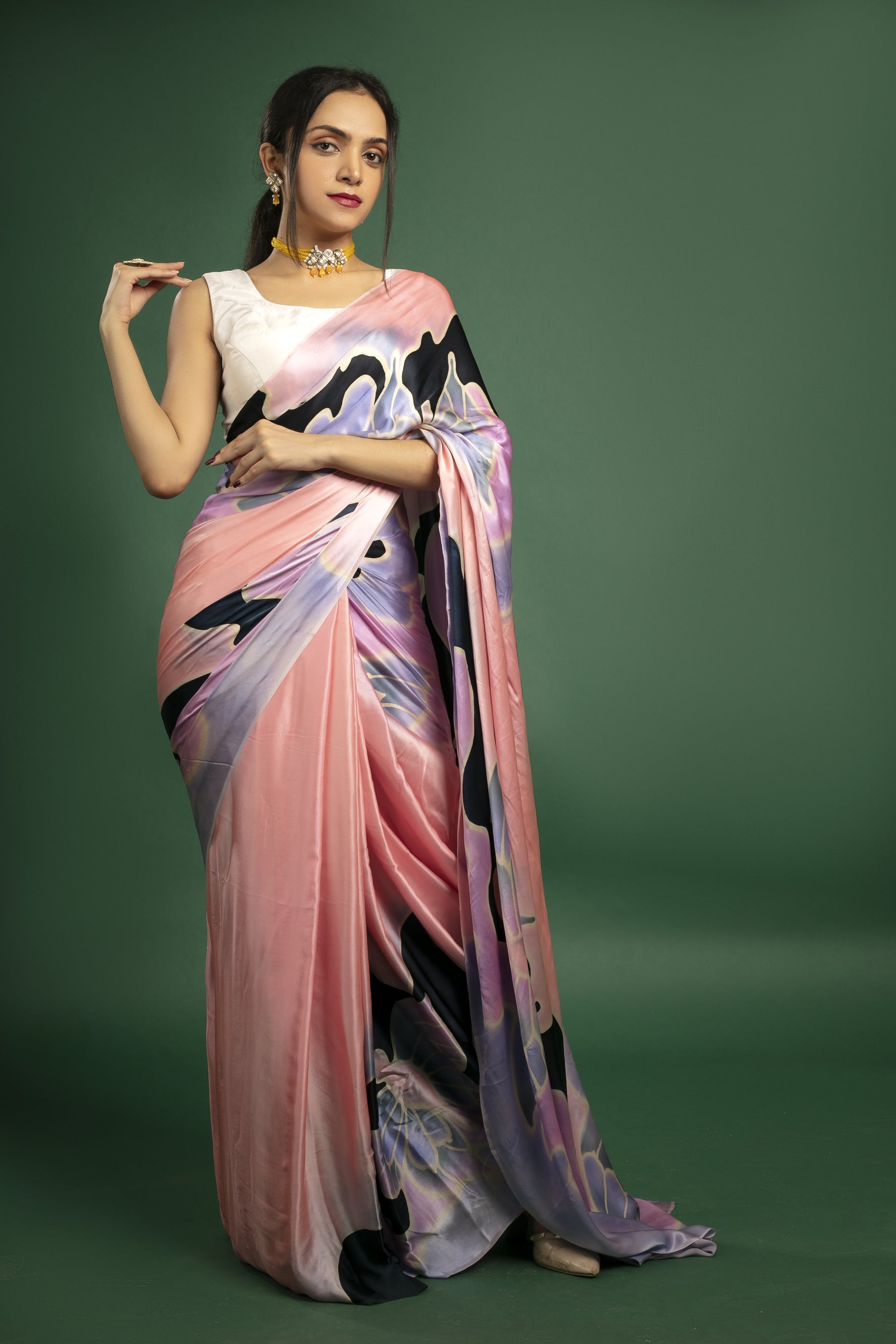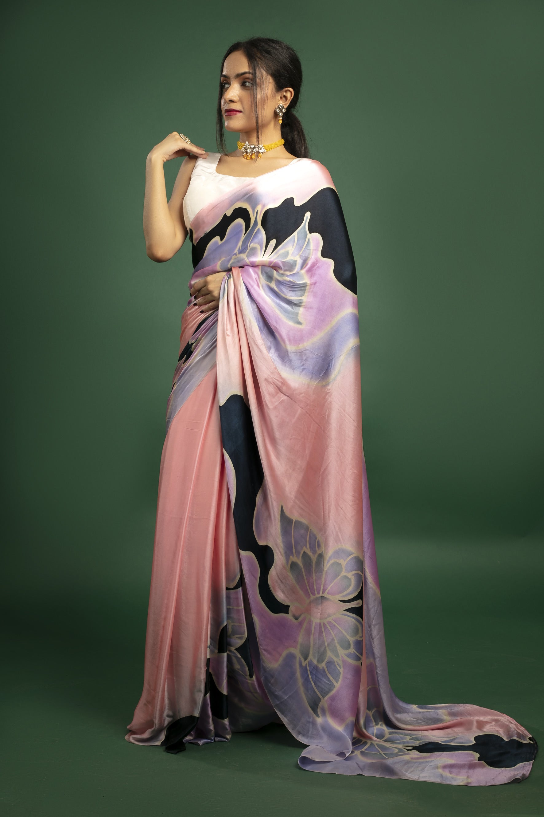 Hand-Painted Pure Silk Satin Saree
