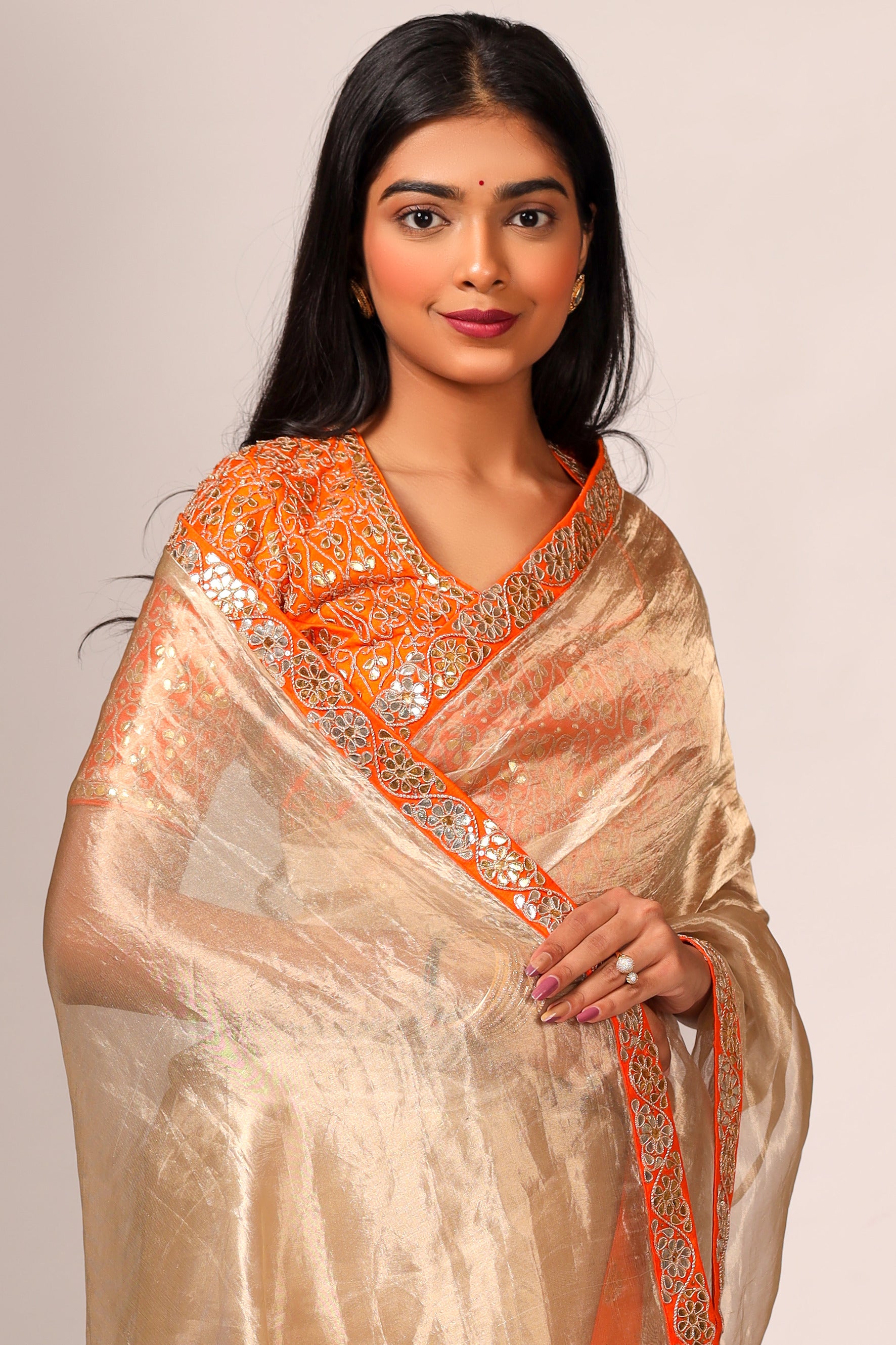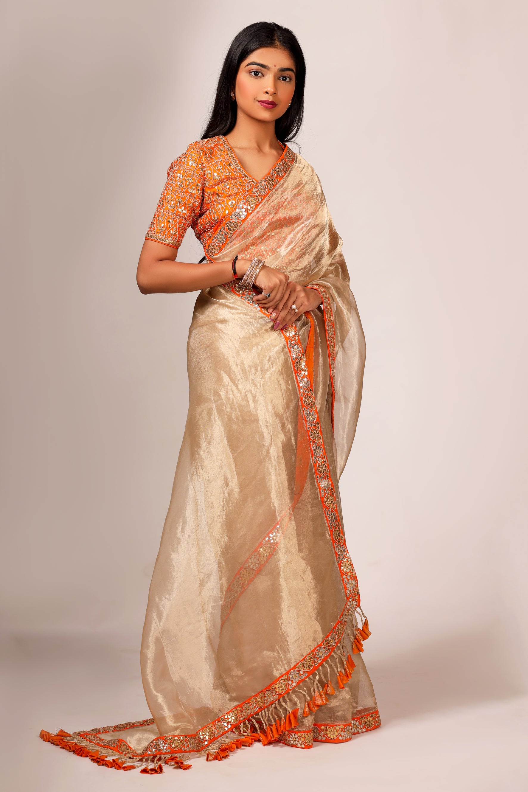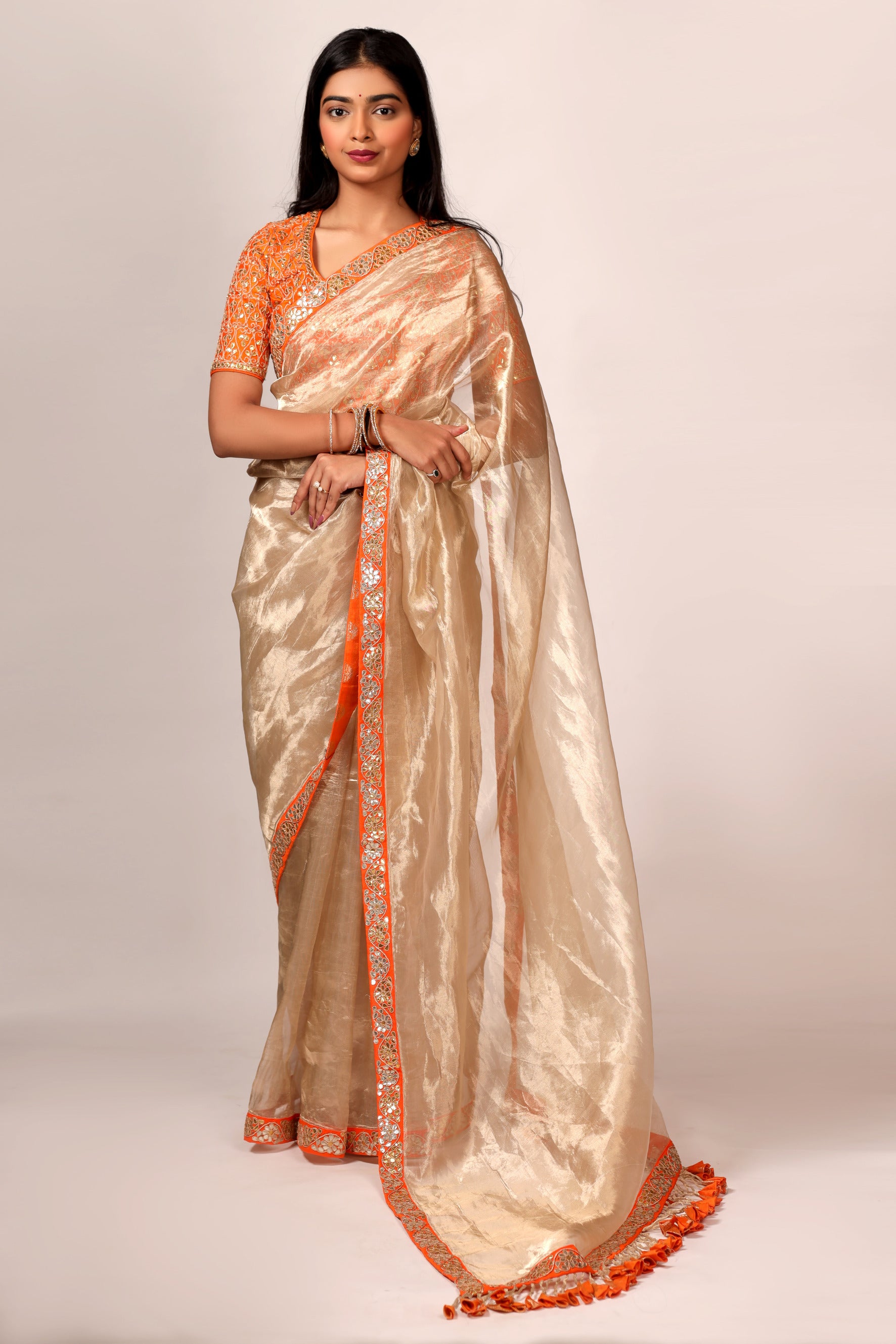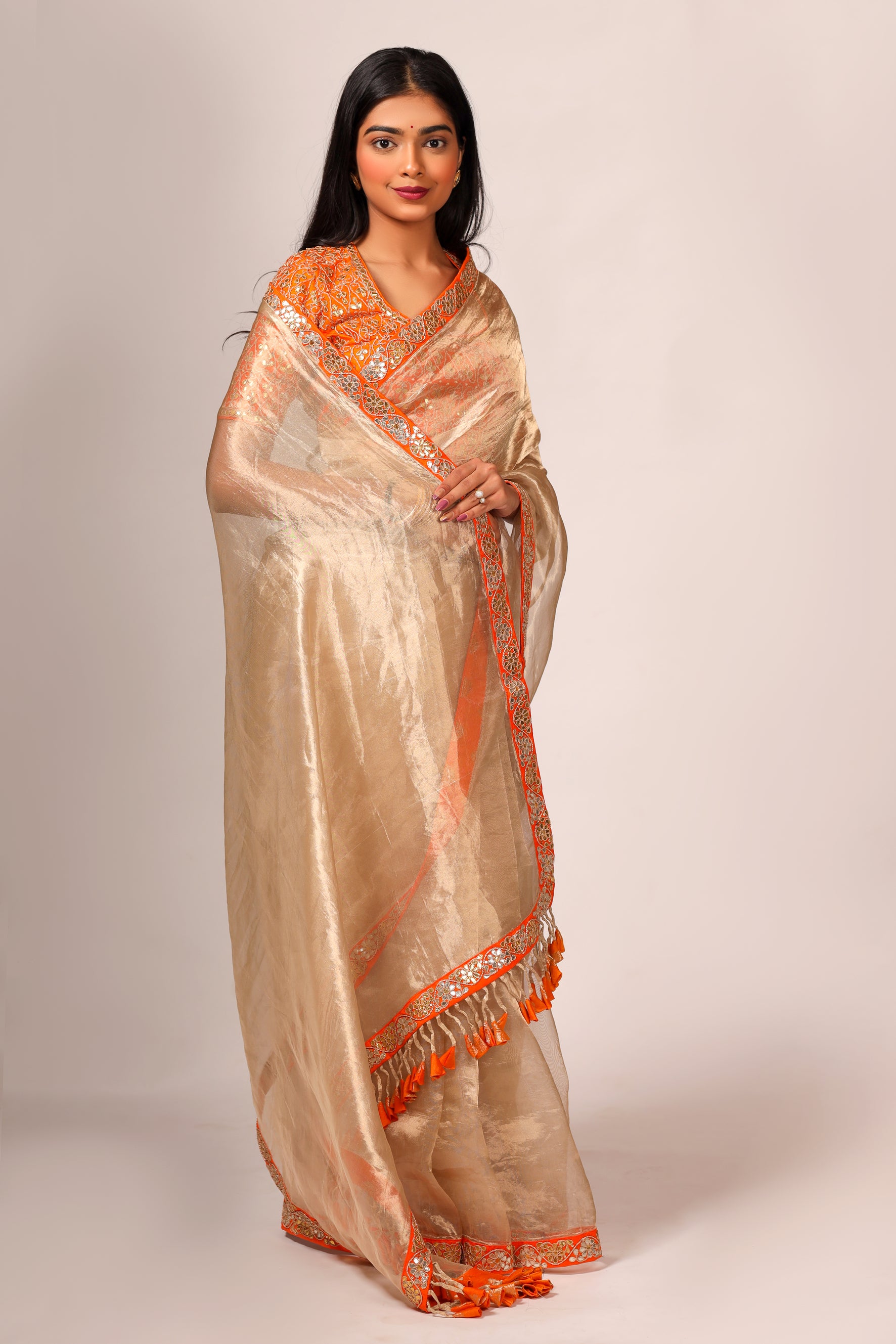 Silk Tissue Saree with Hand Embroidered Gota Patti Work