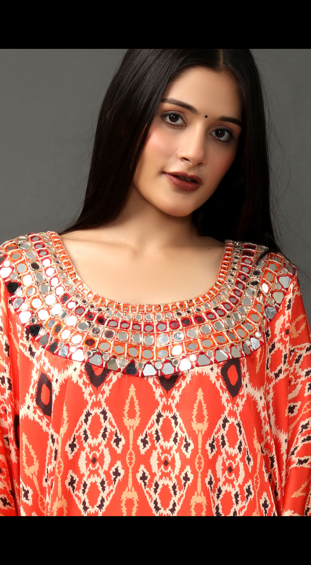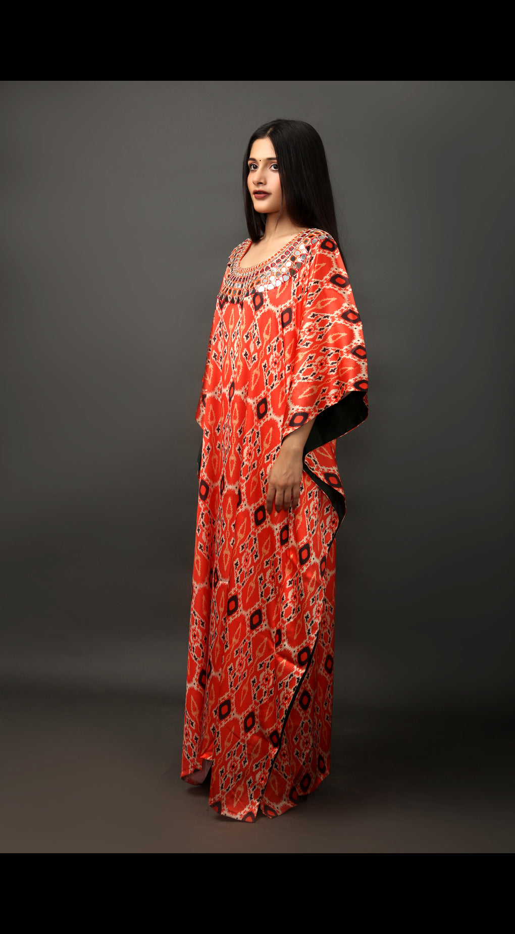 Digital Printed Kaftan with Hand Embroidered Neckline