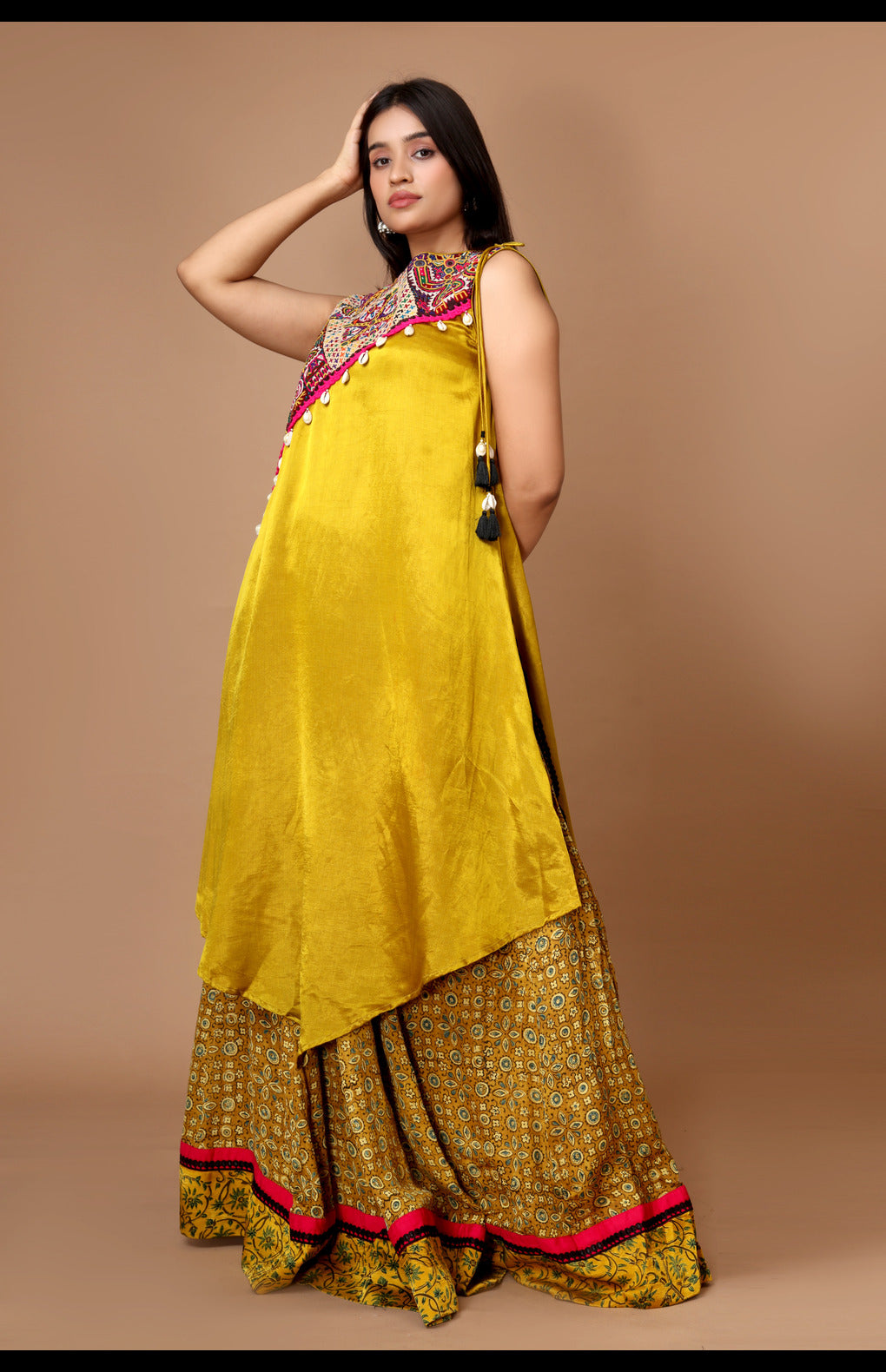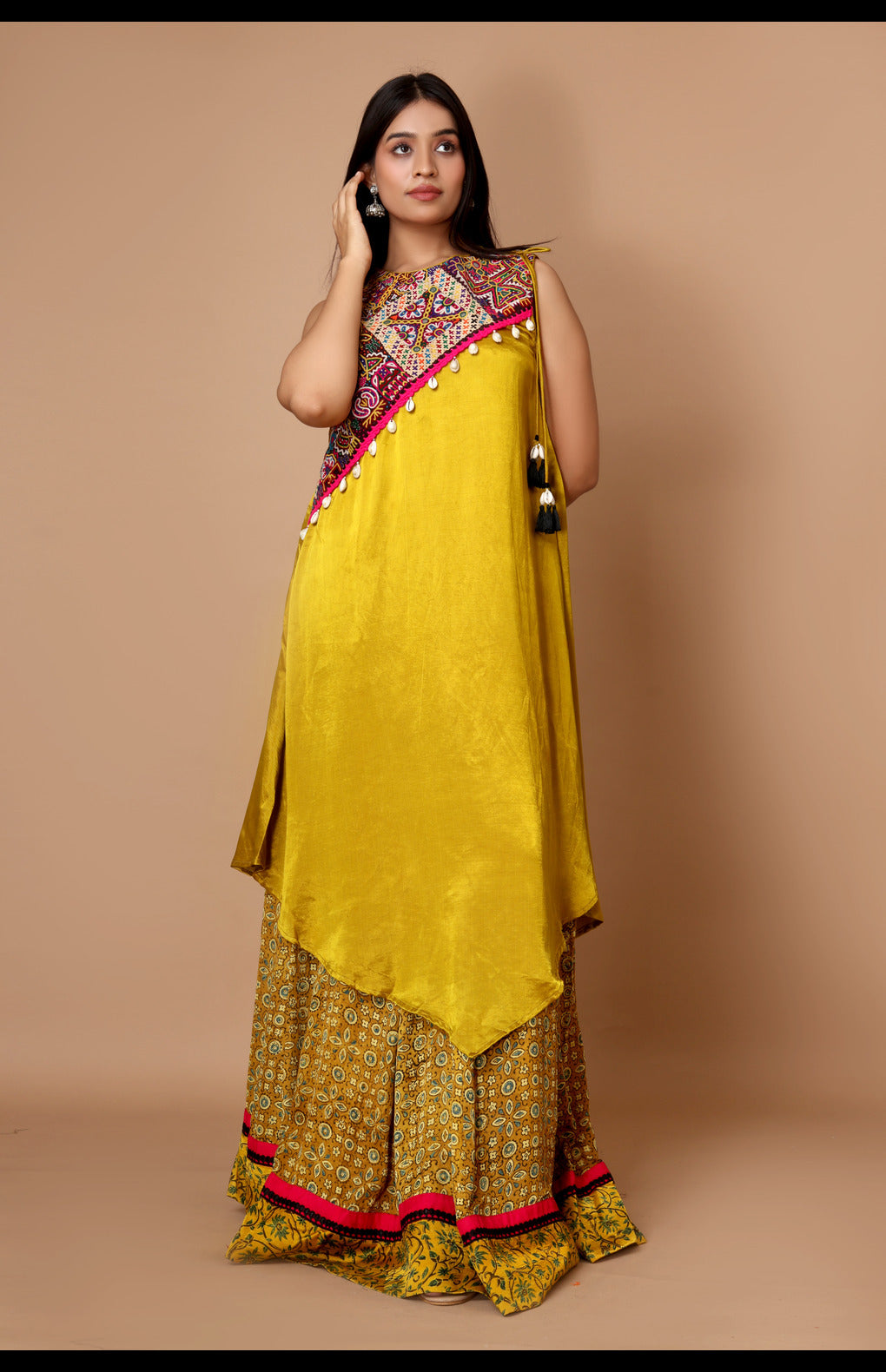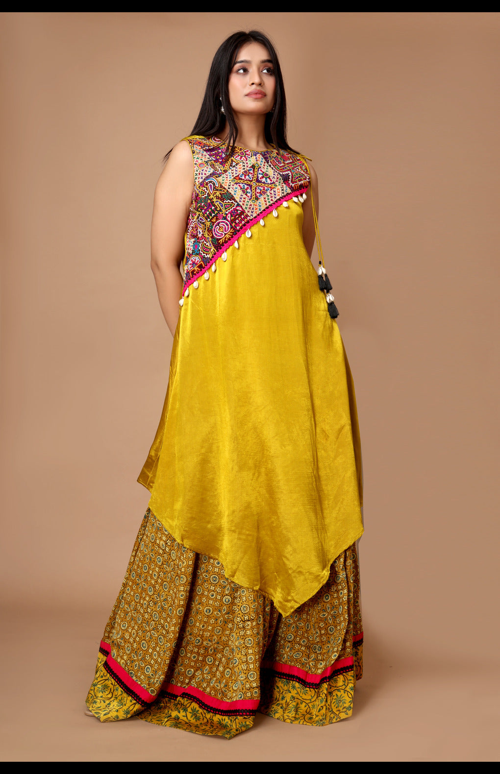 Handcrafted Ajrakh and Kutchi Embroidered Outfit